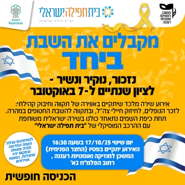 מקבלים את השבת ביחד- לציון שנתיים לשבעה באוקטובר -כניסה חופשית